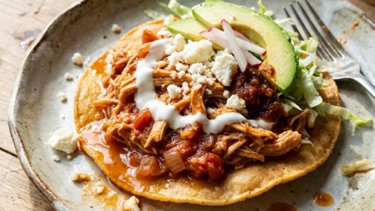 Chicken tinga is a Mexican classic, and for good reasons. Shredded chicken breast simmered in a sauce of chipotle peppers in adobo, blended with tomato, onion, garlic, and reserved chicken broth. So delicious.