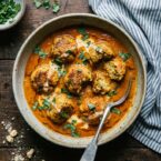 I served the koftas in a creamy tomato curry sauce – inspired from the gravy served with malai kofta, perfect to soak up some surrounding rice or a piece of naan bread.