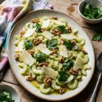 - Sprinkle with walnuts, parsley leaves, salt, and pepper.