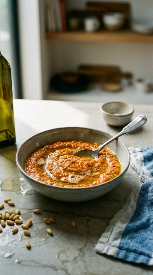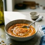 Sweet and smoky charred peppers get a creamy, nutty makeover in this vibrant dip. Perfect with crunchy veggies or fruit slices.