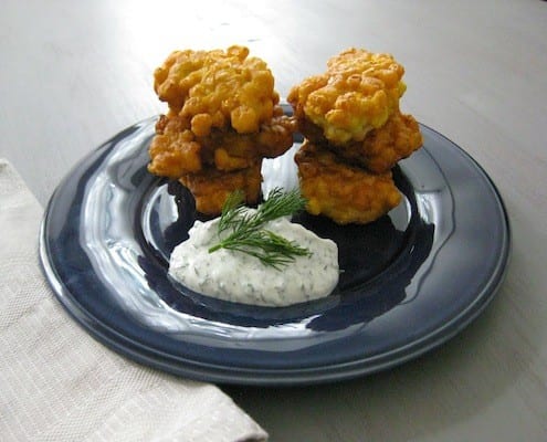 - Serve the sauce alongside the fritters.