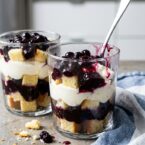 Creamy cheesecake and sweet blueberry sauce layered in pretty parfaits. A delightful dessert for any occasion!