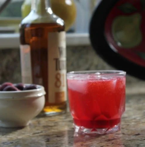 Bourbon and cherries love each other, and citrus juice and a bit of fizz make this more summery than its Manhattan kin.