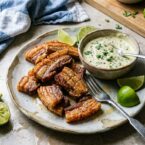 Pork belly strips get extra crispy, then meet a creamy cilantro-lime aioli. A simple, satisfying side dish.