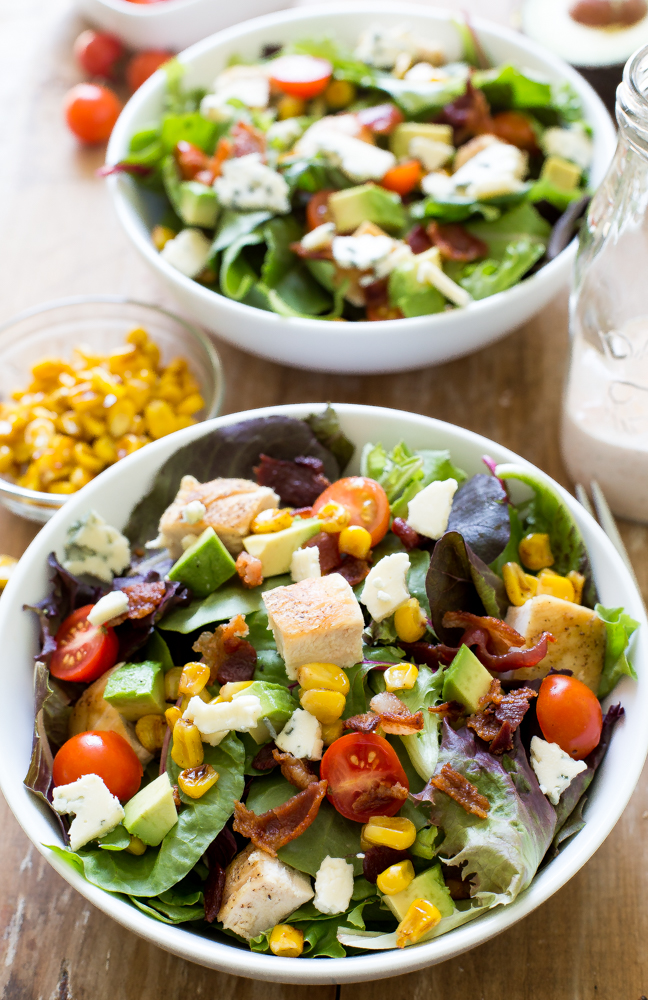 This salad is similar to a traditional cobb salad but with a spin. Grilled chicken and corn are added to this salad and it all is drizzled with an AMAZING spicy buttermilk ranch dressing. Loaded with cayenne pepper and tabasco for a hint of spice.