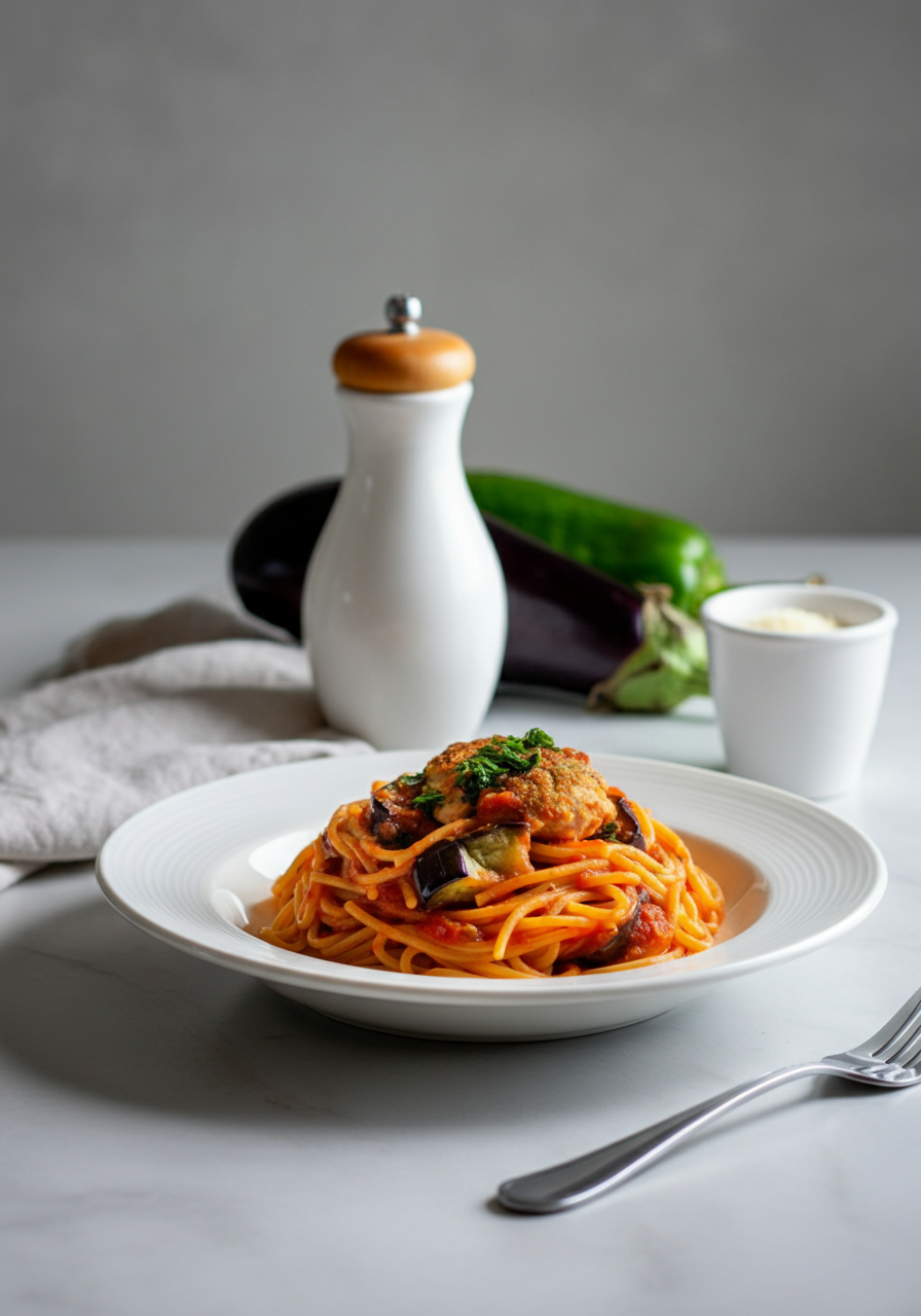 Chicken and Eggplant Spaghetti