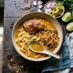 This rich Thai curry noodle soup is comfort food at its finest. Tender chicken, creamy coconut broth, and plenty of vibrant toppings make it a meal to remember.