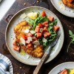 Crispy-breaded chicken cutlets, perfectly fried and served with a bright, fresh tomato and arugula salad. A classic Italian dish, elevated.