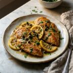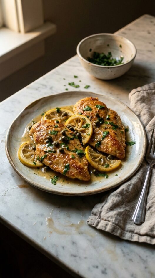 Chicken piccata is proof that you can make a restaurant-quality Italian dinner in under twenty minutes. Thin chicken cutlets dredged in flour, pan-fried until golden, then sauced with lemon, butter, capers, and white wine. The sauce is bright and briny, the chicken is tender, and the whole thing sits beautifully on a bed of angel hair or mashed potatoes.