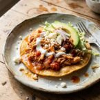 Tostadas are the classic serve here: set out the shredded chicken tinga, sliced avocado, crumbled queso fresco, Mexican crema. Shredded iceberg and let everyone assemble their own. The chipotle sauce is blended smooth with reserved chicken broth, which keeps the final mixture moist without being watery. Adjust the heat to your preference by using fewer chipotle peppers, though the full can produces a warmth that’s real but manageable. Leftover tinga reheats well and honestly tastes better the next day once the flavors have had time to settle.
