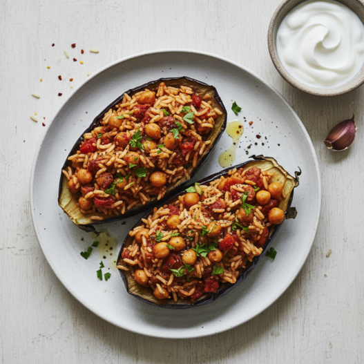 Chickpea and Basmati Rice-Stuffed Eggplant