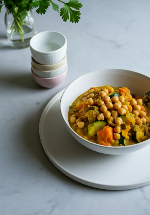 This one-pot chickpea curry is a flavorful, vegan dish packed with vegetables and spices, perfect for a quick and healthy meal.