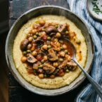If you are one of those anti-polenta people who for some reason is still reading this post, you could also serve the mushroom ragu tossed with pasta. You could also leave out the chickpeas and serve it over my creamy chickpea mash (or leave the chickpeas in if you REALLY like chickpeas…and farting). It’s also tasty served with eggs simmered into it, shakshuka style, along with crusty bread.