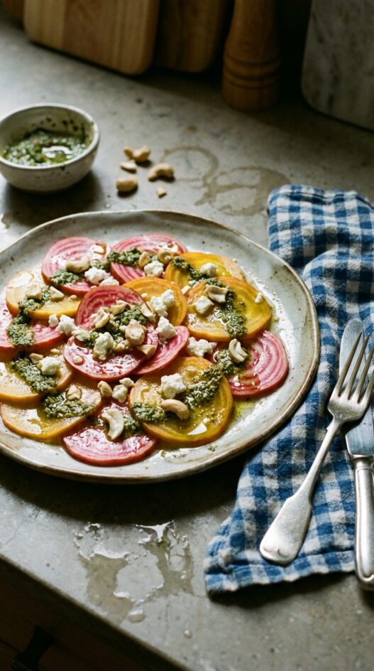 Chioggia Beet Salad with Parsley Pesto and Goat Cheese