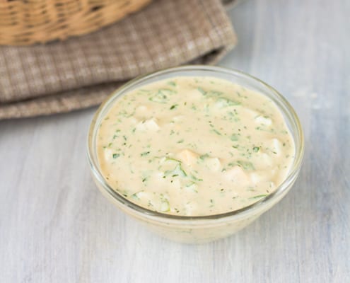 A creamy and flavorful chives and dill sauce that’s perfect for pairing with meats, chips, or crackers.
