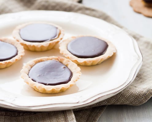 - To assemble, pour a layer of caramel into each tartlet shell, then top with chocolate ganache. Refrigerate until set. Serve chilled.