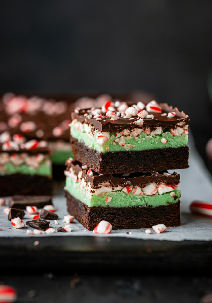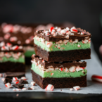Layers of fudgy chocolate, creamy mint frosting, and a rich chocolate topping. Perfect for a festive treat!