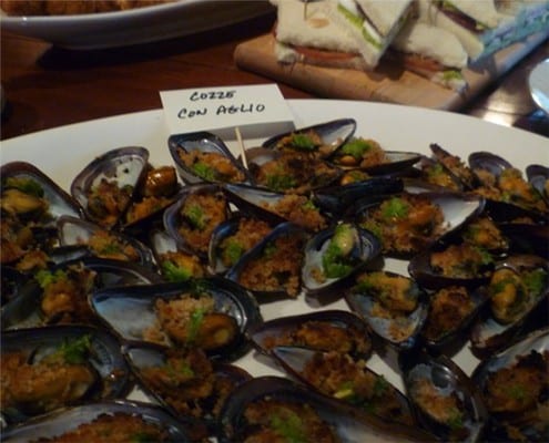 I recently hosted a fundraiser at my home in the US, where many friends gathered to support my upcoming bike ride in the Pan Mass Challenge. The PMC is a two-day, 190 mile bike ride, the largest single athletic event fundraiser in the US, and the largest source of funds for the Dana Farber Cancer Institute. To support my ride, I hold events like these where I can at least say “thank you” to my donors by cooking! Here, I recreated a Giro d’Ombra, serving wines from the Veneto that I’ve found in my travels, and serving a large selection of traditional Venetian cicchetti. Here is one of the recipes; others will follow in the next few posts.