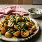 - As soon as potatoes are cooked, transfer to a plate and top with chimichurri.