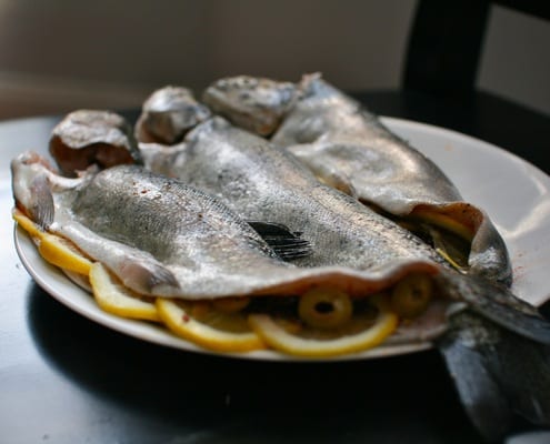 Fish like salmon and sea bass- two of the more popular and “easier” to prepare fish, have been outfished and outsourced in the last decade. However there are ethically caught and environmentally friendly options: Arctic Char is a great substitute in lieu of salmon, and Silver Hake (or whiting) is an excellent white fish that provides to be a good replacement for sea bass. Click on over to the Monterey Bay Aquarium seafood guide for more details on what fishes are both good for your tummies and good for the environment as well. Luckily, trout is on the list!