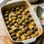 A mix of meaty olives like Castelvetrano and Kalamata holds up well to roasting and absorbs the citrus and rosemary flavors without turning mushy. Avoid canned olives packed in water, as they tend to be too soft.