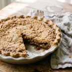 This pie, with its roots in the Pennsylvania Dutch tradition, brings a touch of nostalgia and warmth to any table. It has all the flavors of a molasses ginger cookie mixed with a buttery streusel in a flakey pastry crust.