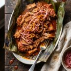 Cochinita Pibil is a traditional Yucatan slow-roasted pork dish that is marinated in citrus juices and achiote paste, giving it a gorgeous golden hue and fall apart tenderness.