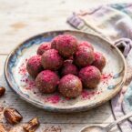 Decadent cocoa-caramel truffles rolled in raspberry powder. A perfect no-bake treat for any occasion.