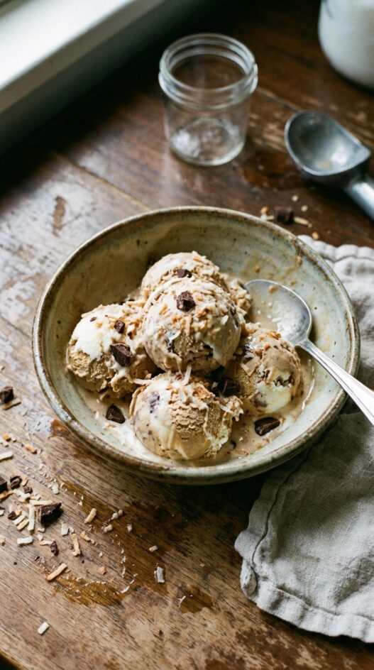 The coffee adds a roasted bitterness that balances the sweetness of the coconut. Together they create a rich, layered flavor that keeps each spoonful interesting.