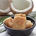 Traditional fudge recipes have always intimidated me. Even though I have always loved coconut fudge, I had never tried making the traditional fudge before. It has always seemed to be a bit too sweet for my taste. And meddling with quantity of sugar can ruin the texture of the fudge. How ever, everything changed when I tasted this version of the coconut fudge at a friend’s place. I immidiately asked her for the recipe which she was glad to share.