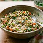 This is a perfect crowd-pleasing recipe to throw together on a whim. A few minutes of veggie chopping and can opening, stir it all together and dig in. So versatile, too! This black-eyed pea salad is super yummy with chips as a dip, makes a delicious topping for eggs, salad or tacos and even works well as a fresh tasty side salad.