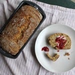 Now I am careful to never proclaim victory over yeast until after I’ve tasted it, after all, I’ve had countless yeasted treats look and feel just perfect, only to pop them in my mouth and immediately want to spit it back out. So I smeared a bit of soft butter and a nudge of raspberry jam onto a slice of the bread after it had cooled a bit, closed my eyes and took a bite. It was dense at first, and I mean that in a very good way, a bit chewy with a tightly woven crumb and little nubbly bits of oats freckled throughout the loaf. The crust isn’t terribly thick, but it’s just craggy enough to require an extra chew. I took another bite, and then cut myself another slice, then another until I realized I’d eaten nearly half the loaf and declared victory.