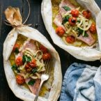 Delicate red snapper is steamed in its own parchment packet with cherry tomatoes, fennel, and herbs. A light, flavorful, and elegant main course that’s surprisingly easy to make.