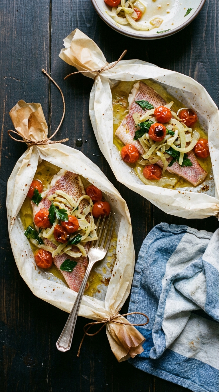 - Carefully open the packets, watching out for steam, and serve the fish directly in the parchment for a dramatic presentation.