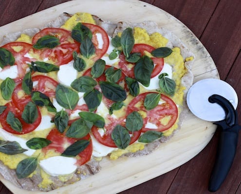 PrintGrilled Pizza with Cheesy Corn, Fresh Tomatoes, and Basil