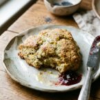 My only complaint is that scones really are best the day they’re made, and not much longer. If you’re going to make them, be prepared to eat the whole batch pretty quickly…or find some friends to share with! Though Everyday Food had a note on the page saying these keep well in an airtight container for up to 3 days, I think they’re best the day they’re made. If you can’t eat them warm from the oven, I recommend reheating a bit–you can’t beat a warm scone with butter and jam!