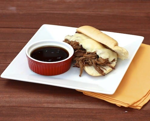 Our travel arrangement has definitely made cooking dinner a little bit more interesting. We typically stick to leftovers on these nights to prevent too many stops for fast food. This French Dip recipe came in handy when I had no leftovers for Ryan to take. I stuck the roast in the slow cooker before we went to bed and by morning it was ready to be shredded! Even better, it made enough to feed us (and my brother!) for a few days! Print