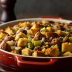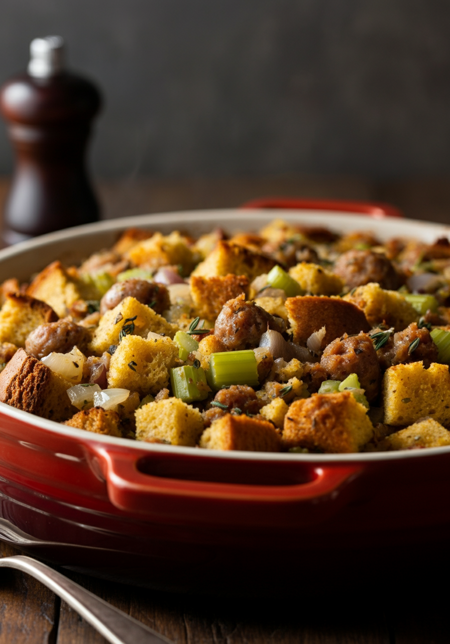 A hearty, flavorful stuffing perfect for holidays or a cozy Sunday supper. Savory sausage, herbs, and crunchy bread make this a crowd-pleaser.