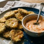 For a party-friendly appetizer, I decided to attempt frying my own tart slices in a cornmeal crust alongside a tangy dip. The resultant lightly battered chips dipped in the smooth, zesty sauce were highly addicting. The pop-able snacks are perfect appetizers for any summer gathering and will rival any onion ring.