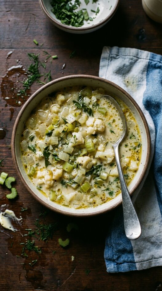 Creamy, comforting soup bursting with garlic, leeks, and cauliflower. A taste of classic Connecticut.