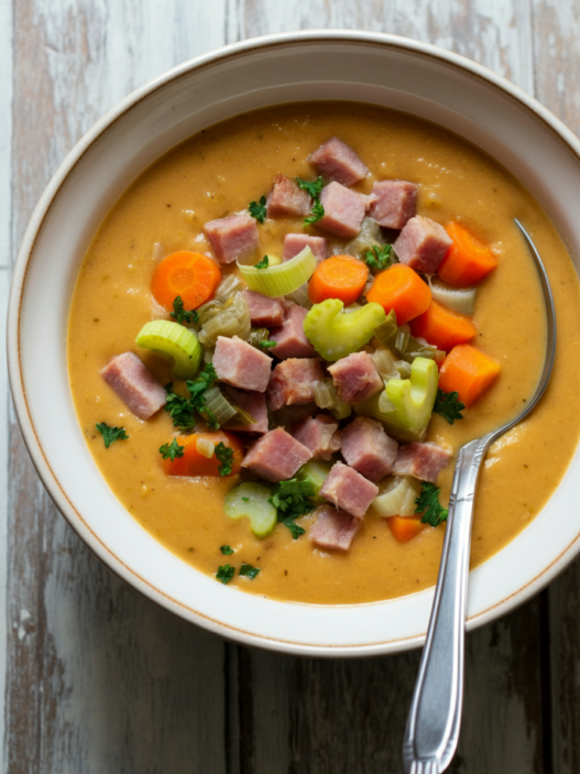 I had some leftover ham, so I threw that in. The soup was delicious and sooooooo satisfying. Will make again!