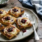 Flaky puff pastry, creamy brie, and tart cranberry sauce combine in these elegant little bites. Perfect for holiday parties or a cozy night in.