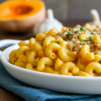 A creamy 3-cheese mac with a butternut squash sauce tossed with noodles and baked.