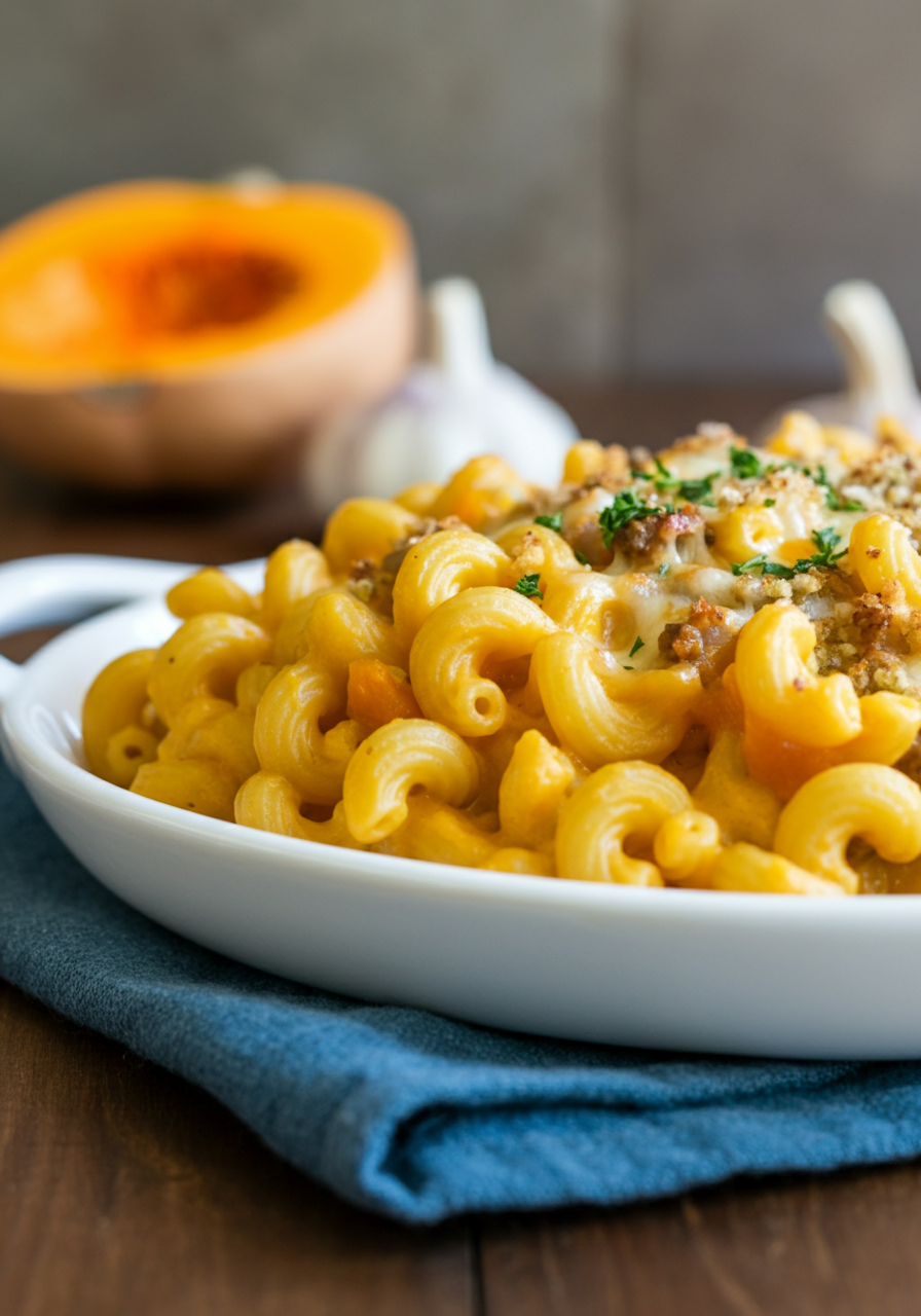 Roasted butternut squash adds sweetness and creaminess to this comforting mac and cheese. A crispy panko topping adds a delightful crunch.