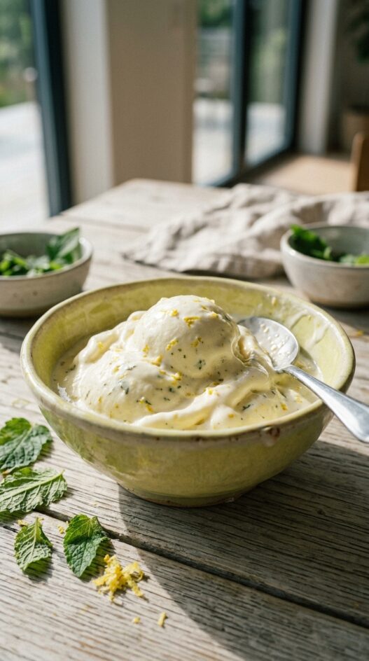 The lemon zest enhances the citrus notes of the gelato, compensating for the milder flavor of lemon balm compared to lemon verbena.