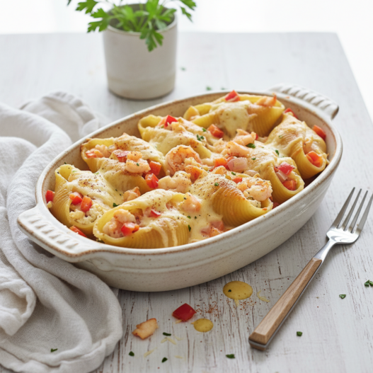 Once out of the oven, allow the dish to cool for a few minutes. Serve your creamy lobster and shrimp stuffed pasta shells with a side salad or crusty bread.