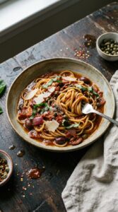 This is one of my go-to Italian weeknight favorites. Fresh egg tagliatelle tossed with mascarpone sauce, crispy prosciutto, and toasted walnuts. The mascarpone melts into a creamy coating that clings to the pasta, while the prosciutto adds salt and texture, everything topped with cracked black pepper and walnuts.