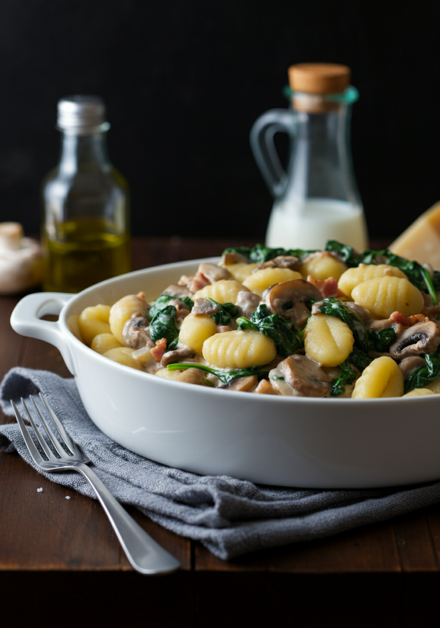 Gnocchi, mushrooms, spinach, and cheese combine for a delicious weeknight meal.