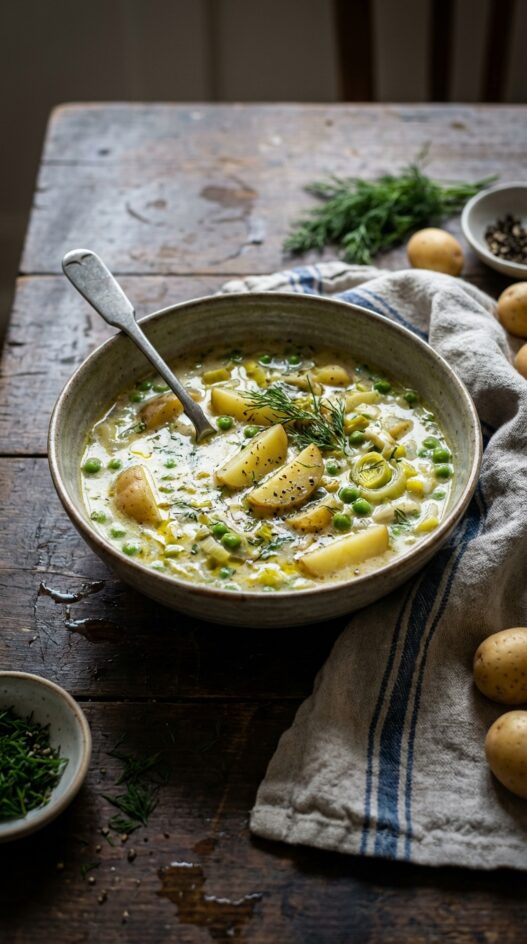Hearty potato and pea chowder, perfect for a chilly evening. Creamy, comforting, and surprisingly easy to make.