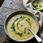 - Ladle soup into bowls and top with a drizzle of parsley oil.